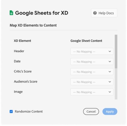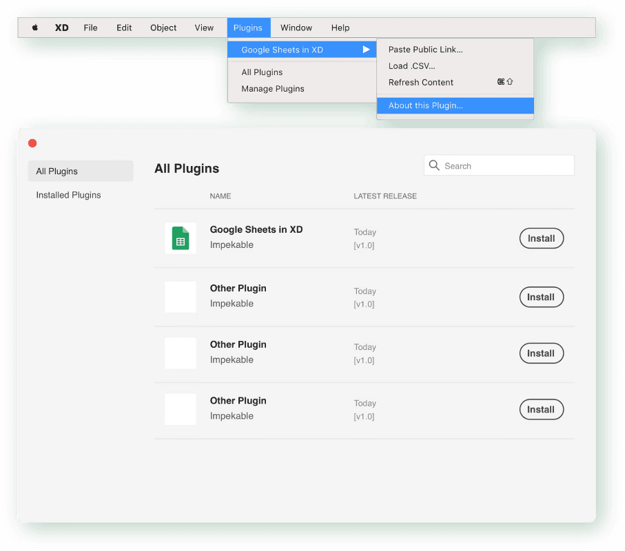 Adobe partnered with Impekable to create an integration between Adobe XD and Google Sheets whereby data from a Google Sheet could be imported into a design allowing designers to more easily design with real or imported data. Impekable had to work with a very early plugin framework and make a robust plugin worthy of the Google Sheet logo endorsed by Google.
