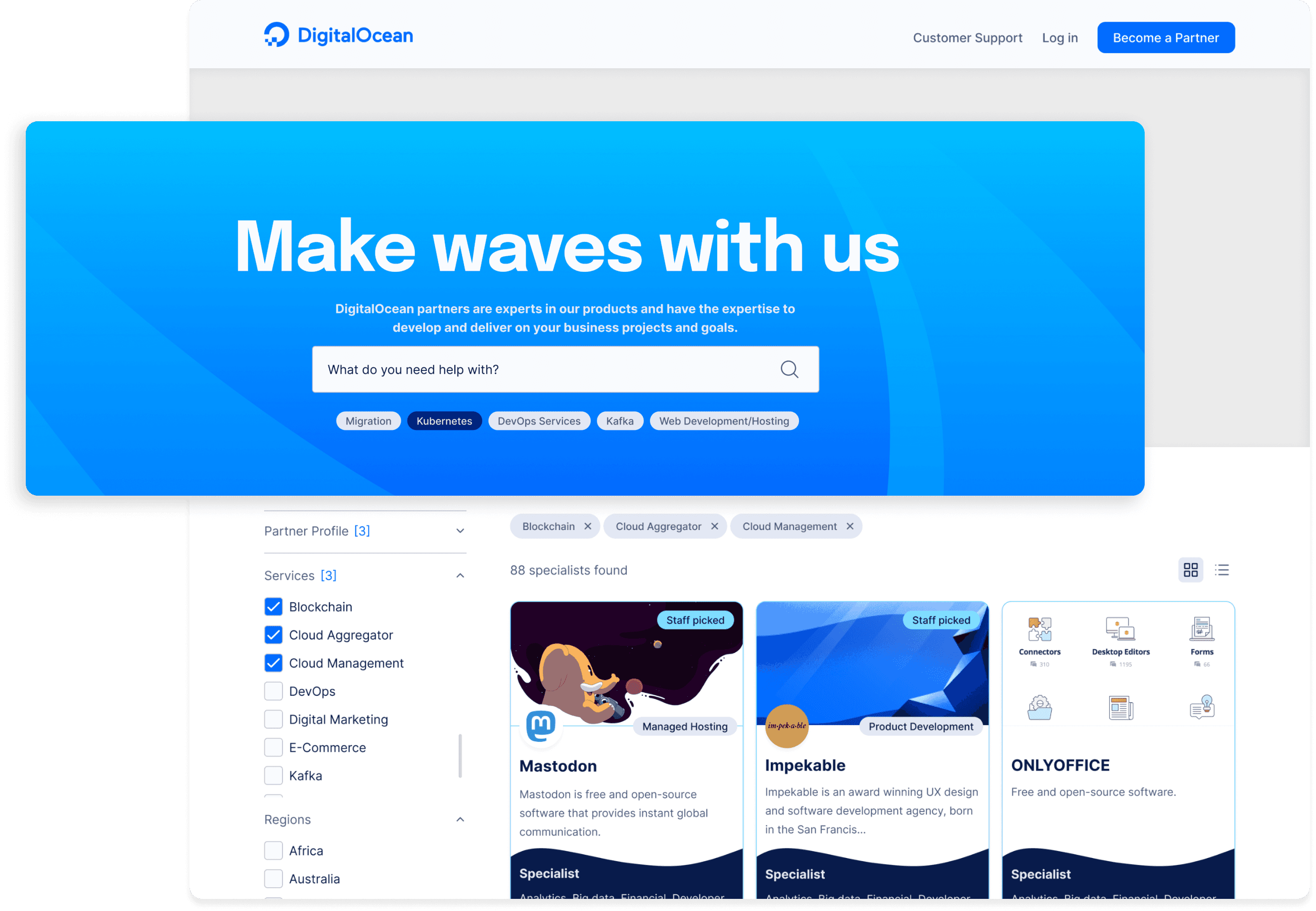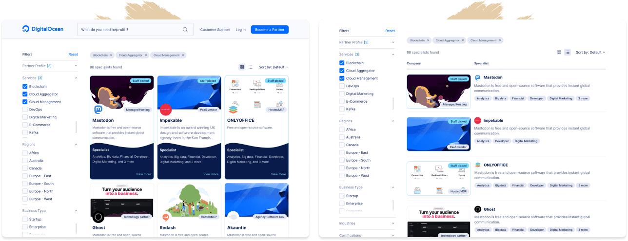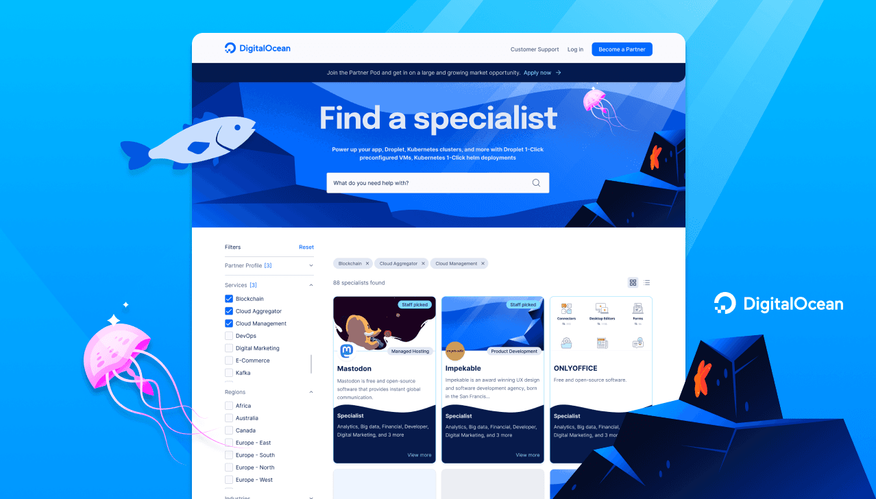To attract larger enterprises and niche sectors, DigitalOcean sought to create a search directory of providers who offer specialized developer services – like Kubernetes deployment or DevOps.