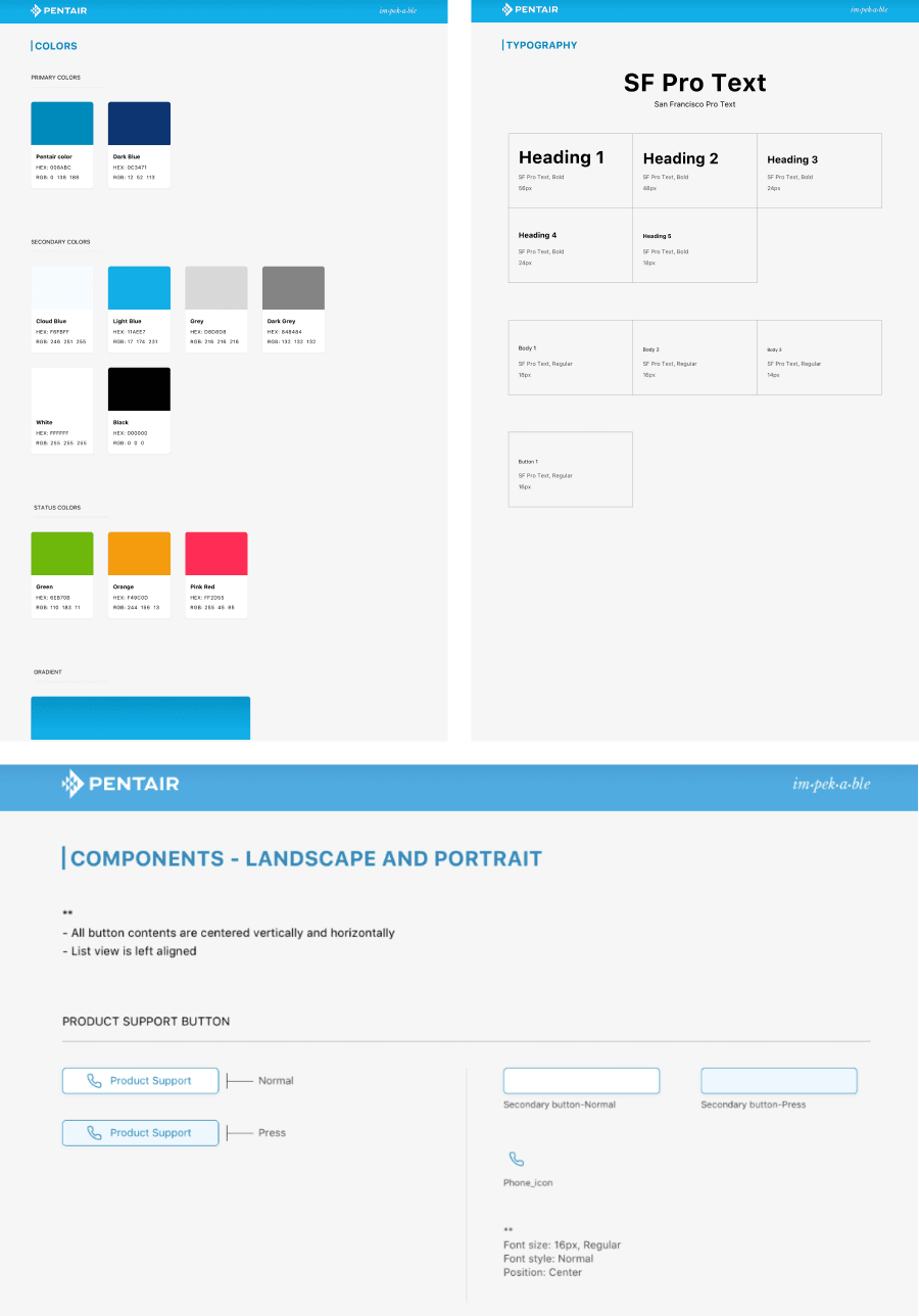 Ultimately, these and other elements enabled our team to create visual consistency between Pentair’s different apps and experiences, in addition to speeding up subsequent design processes.