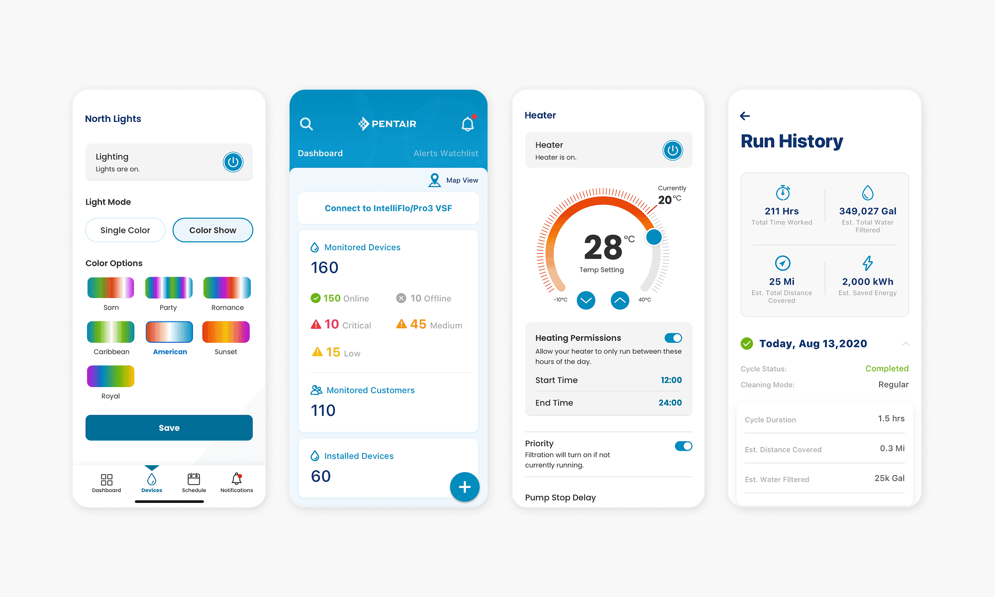 A Home App for retail consumers of Pentair’s solutions, which allows users to monitor the status and activity of their pool units, showers, water softeners, sump pumps, and other connected devices.